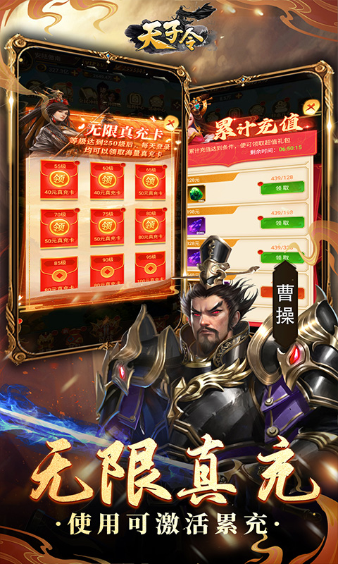 1.上线福利:上线送V10,游戏充值0.1折,礼包低至1分钱,神魔武将低价畅玩; 2.无限真充:升级免费送海量真充卡使用激活累充,完成任务无限送真充卡; 3.高级招募:登录和升级再送高级招募令,豪礼百连抽,全民福利大放送; 4.免费千抽:免费送1000连抽,抽到满意阵容为止,神魔随便抽,让你开局一直爽; 5.七日登录:登录送充值卡,连续登录送大桥,七天登录送超强前排神·文丑; 6.轻松畅玩:内置多线挂机系统,上线高福利,稳定高连抽,不用充值也能轻松畅玩;