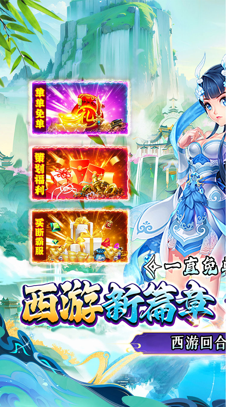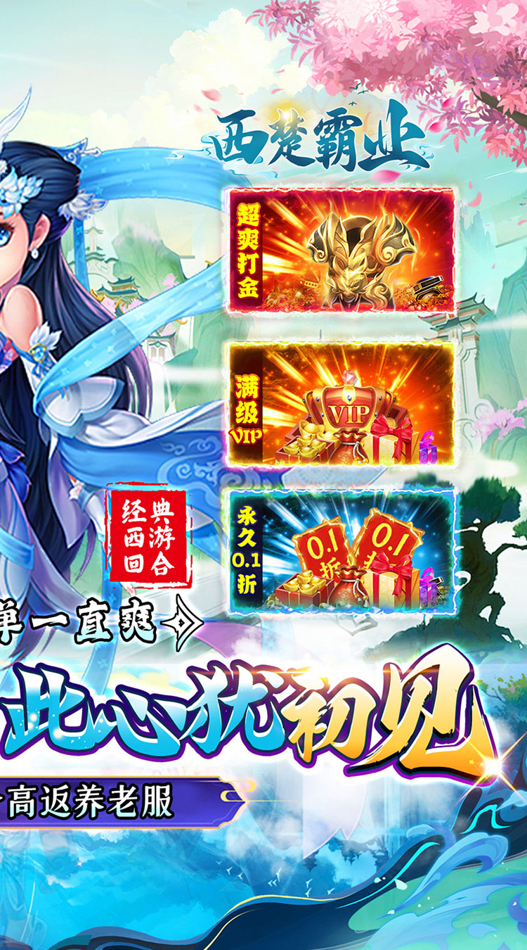 ★【永久0.1折】充值比例1:1000(元宝),全场充值永久0.1折; ★【高返版本】超高比例返还,线下活动买断免单券,轻松毕业当大佬; ★【爆爽免单】打怪爆免单券,可在游戏内抵扣充值轻松养老; ★【新人福利】开局即送满级VIP,888万元宝; ★【策划福利】超值福利免费放送,强力神宠等你来领; ★【超爽打金】免单券闯关轻松获取,白嫖充值拿到手软; ★【西游回合】回合制新体验,轻松上手梦回经典;