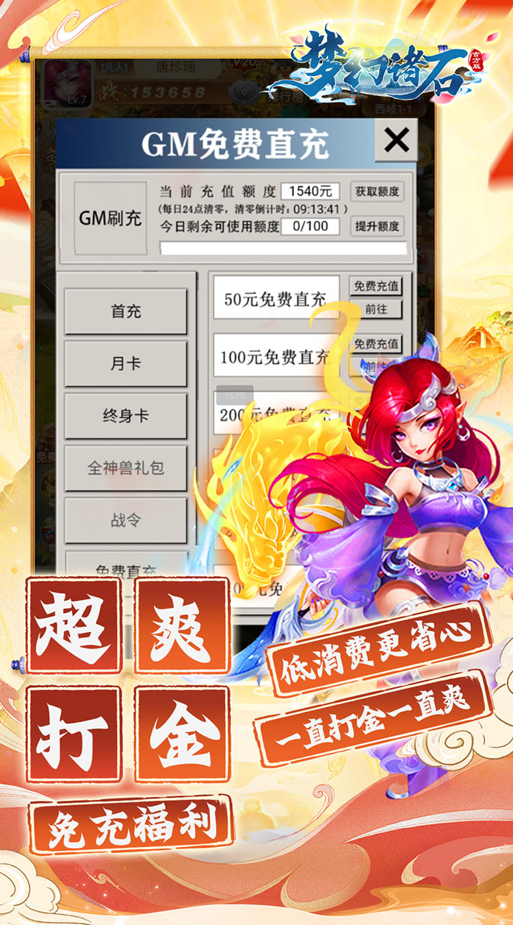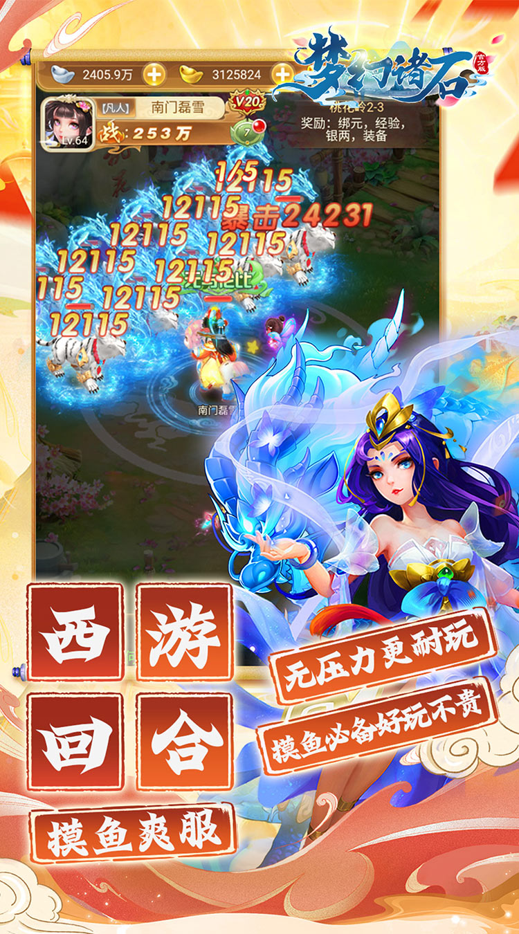 梦幻开场,福利超返。《梦幻诸石官方版》是一款以西游为题材的经典回合制手游,人、仙、魔三大职业强势助阵,上线即送满级VIP和超强打金工具,免费刷充不花一分钱也能体验充钱的乐趣。传承经典回合制玩法,驾驭极品神宠,召集强力伙伴,施展华丽技能,决战三界之巅,成就至尊荣耀!