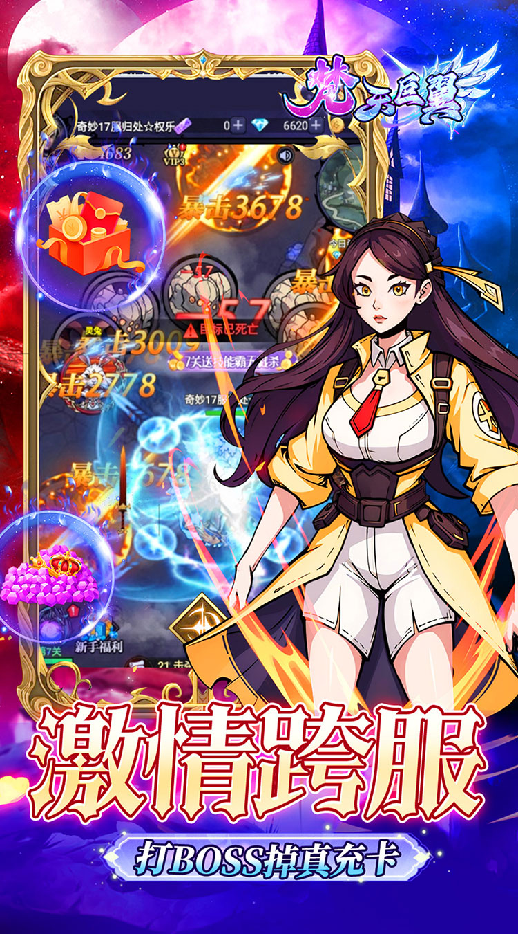 ★★【充值0.05折】游戏内所有充值享永久0.05折福利; ★★【天天送代金】每天登录免费领取2000代金券; ★★【代金买断】买断后无需再充,无限送代金券(买断规则详情可查看线下永久累充活动最后一档); ★★【开局福利】50万魔力、金币*100万、钻石*2万、强化石*300; ★★【打金爆充】打BOSS掉真充卡,免费真充轻松养老; ★★【福利盲盒】超多盲盒免费开启,欧气爆棚福利拉满; ★★【奇妙冒险】七日登录