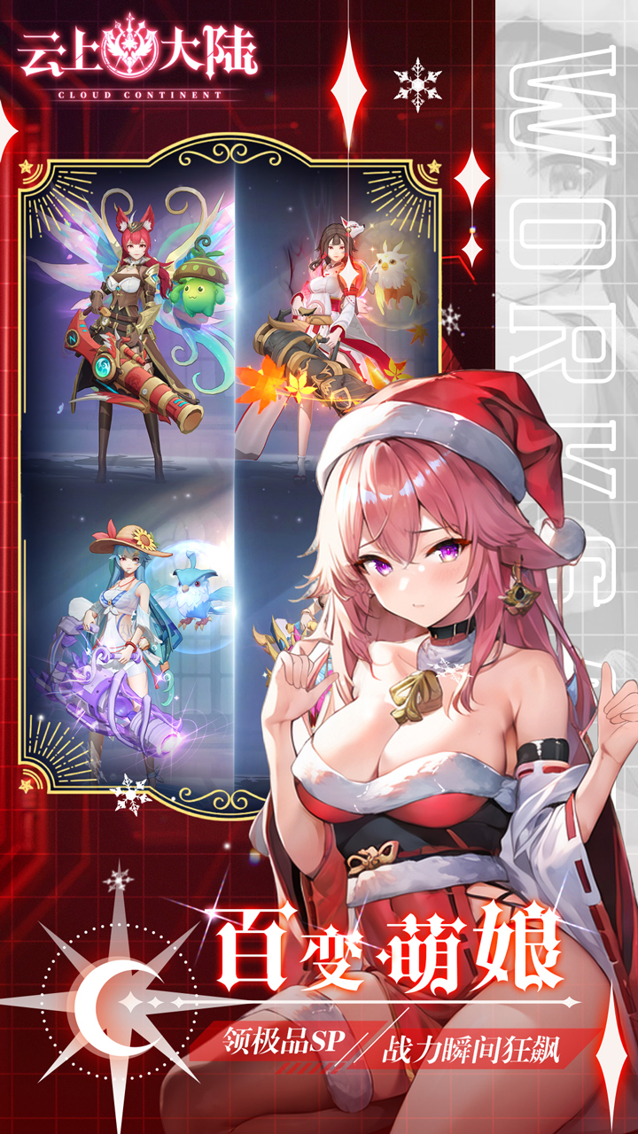 《云上大陆》是一款奇幻世界冒险题材的3D放置挂机RPG手游;在这个遥远星系的云上大陆,玩家将扮演一名冒险者,在俄刻阿诺斯之神的庇护下,一路探险来到了欧斯之城,加入冒险者公会与智慧高超的矮人族、身手敏捷的精灵族一起并肩作战,抵御邪恶龙族和强大兽人族的入侵、通过欧斯勇者竞技场层层选拔、驯服幼龙、收服坐骑,完成勇者试炼,接受女神的“英雄王者”授勋,成为云上大陆的守护者,守护云上大陆和平!
