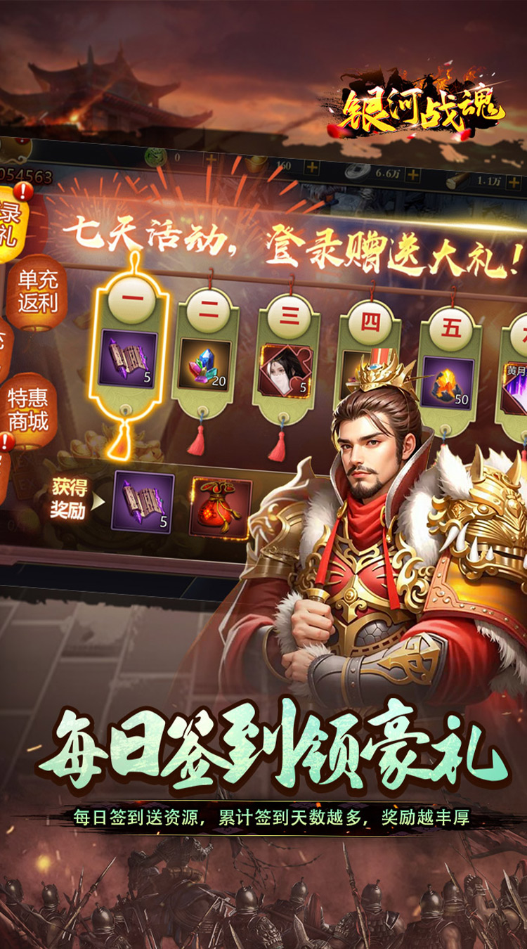 每日签到领豪礼:每日签到送资源,累计签到天数越多,奖励越丰厚