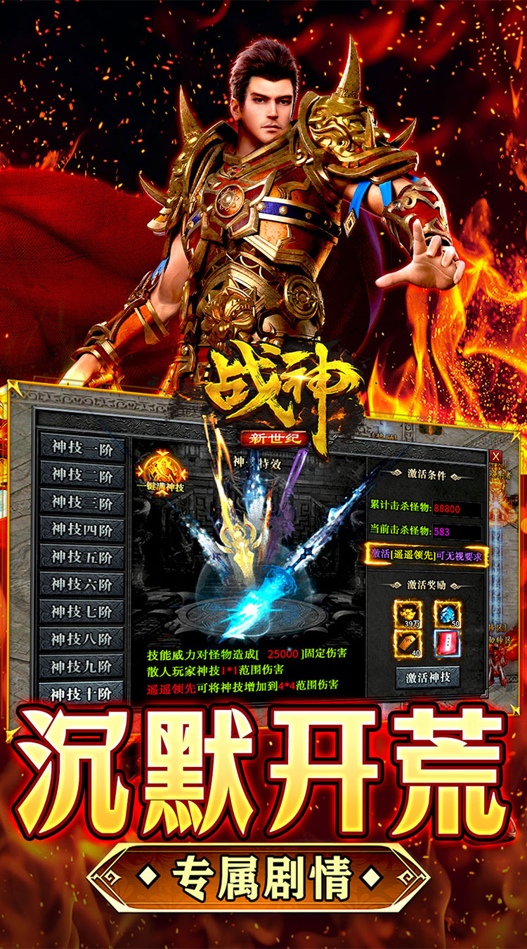 《战神新世纪》是一款四职业神技沉默版传奇!全新复古传奇,热血回归,还原经典!灵活转换职业,大陆专属剧情等特色玩法,给你不一样的体验。战鼓已擂起,热血已沸腾,拿起宝刀,共筑传奇霸业!