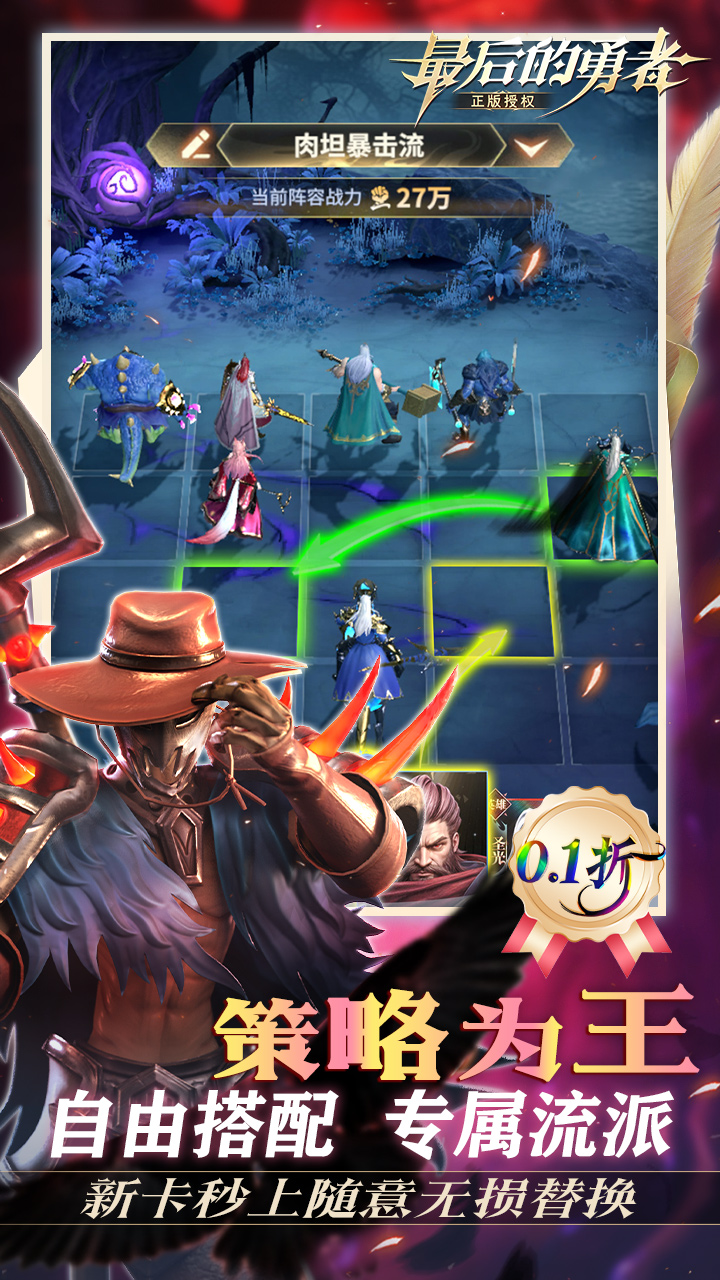 《最后的勇者》全新版本火爆来袭,超爽体验0.1折版新古代战争! 0.1折新古代战争,每日免费送648元代金!全民福利再送10000代金! 最后的勇者是一款充满激情与挑战的策略冒险游戏。精美的游戏画面呈现宏大的异界,丰富的剧情演出,体验激动人心的冒险旅程。一起走进充满未知与奇迹的世界,在广阔的地图上自由探索,发现惊喜海量资源和神秘宝藏。