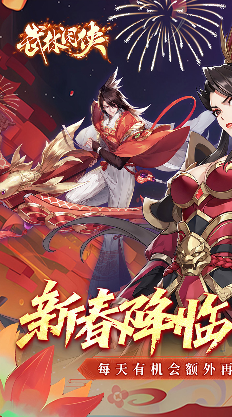 上线送专属称号,元系侠客自选箱,前缘绘劵等稀有道具外福利升级创角除每天送1W代金劵,全新道具“侠运福袋”新春降临,额外最高还可获得1W代金劵