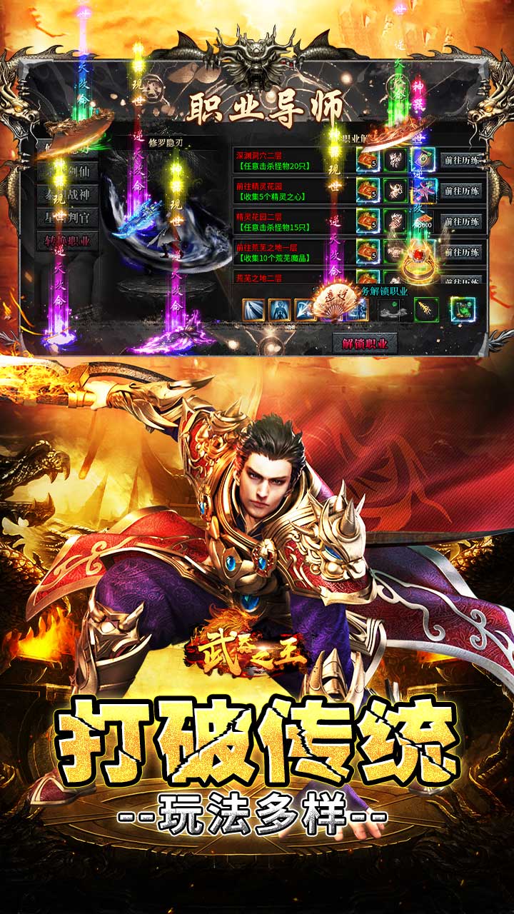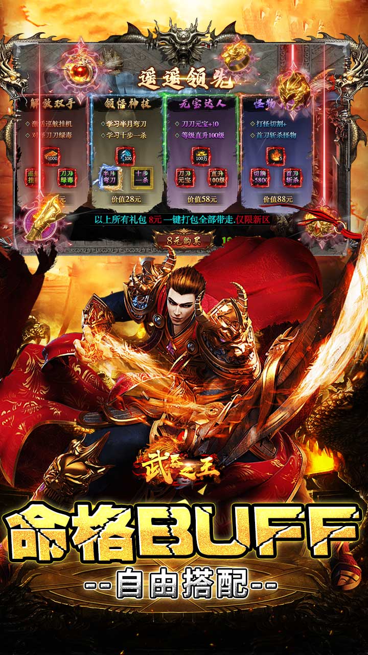1.上线免费赠·送自动回收、自动拾取等福利功能! 2.四职业·法则元神·命格铭文·野兽精华·五行剑阵超多超丰富玩法! 3.专属剧情服,千件专属,装备保值,超爽体验 4.本服黑怪白怪都能出狠货和各种专属称号!
