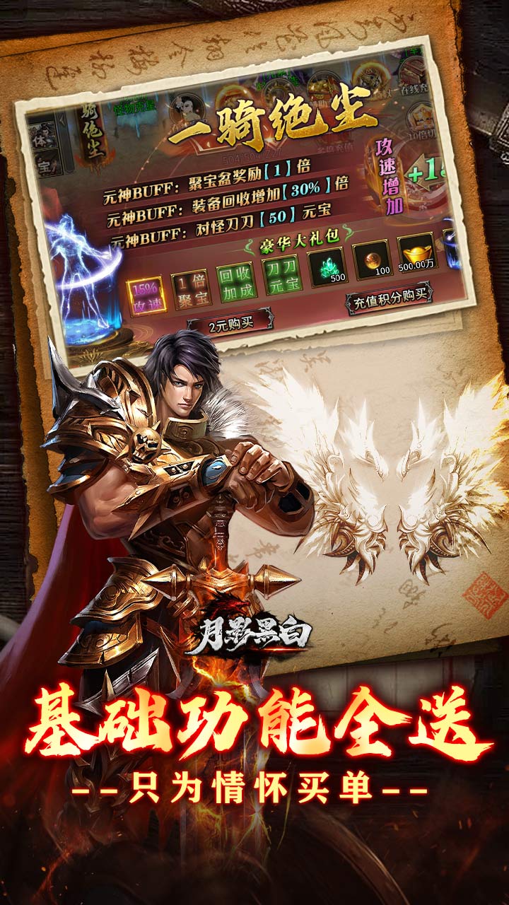 1.上线送:施毒术-自动回收-自动拾取-刀刀切割!基础功能绝不卡玩家! 2.直接飘:赞助会员-首充豪礼-顶级冠名-各种礼包!收费功能花时间就能得到! 3.每日打怪在线就赠送充值积分,无需花一毛钱! 4.回归传奇经典模式开区撸BOSS,运气好新手地直接出终极! 5.首充、特权玩家可获取大量权限,快人一步!