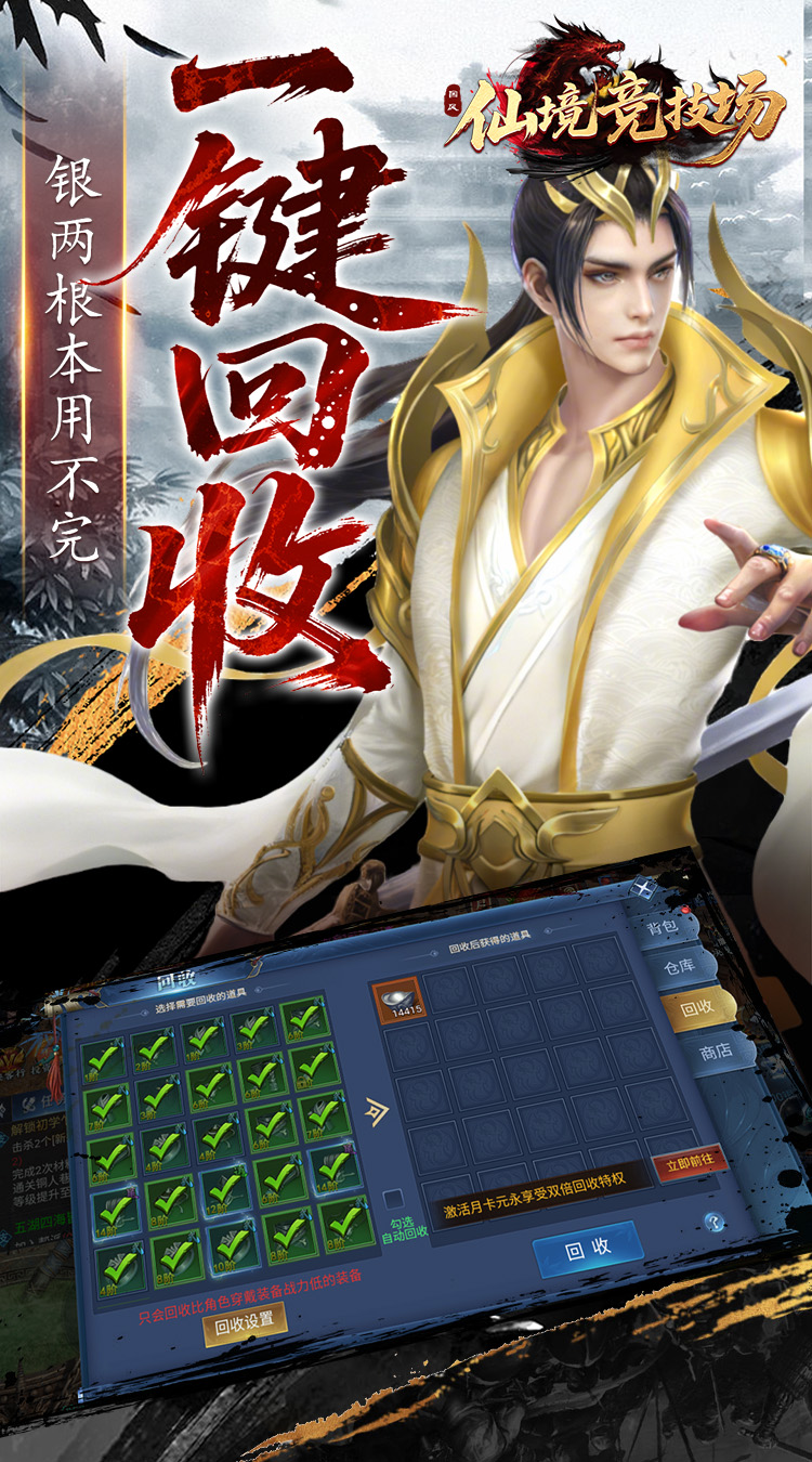 剑开九天,气吞山河!《仙境竞技场》带你闯荡武侠江湖,一款由3D引擎打造的MMO即时战斗类型玄幻手游,热血武林谁主沉浮,蓝光画质与打击感十足的技能特效设计,极致流畅对决体验诠释真正激情四射的仙侠世界,十倍爆率,神装狂掉,开局就送高额真充卡,快意恩仇,尽在掌中! 【开局豪礼,境界直升】 上线即送高额充值卡,七宝妙树源源不断送元宝!开局即可修炼无双武学,轻松登顶高手之列。 【十倍爆率,神兵任爆】 行走江湖,刀光剑影之间皆是机缘!BOSS十倍爆率,材料装备满地掉落,小怪也能出神兵,散人也能轻松逆袭! 【无限回收,银两无尽】 绝世武器、稀有材料,皆可无限回收,换取滔天银两!挂机刷怪亦可获赠充值卡,真正边修炼边致富,武侠梦与传奇路两不误! 【热血攻城,侠义并肩】 行会齐聚,重燃攻城热血!万人同屏,刀剑纵横,谁能一战成名问鼎江湖?跨服对决,更有稀世武学、幻化神兵掉落,书写属于你的武侠传奇!