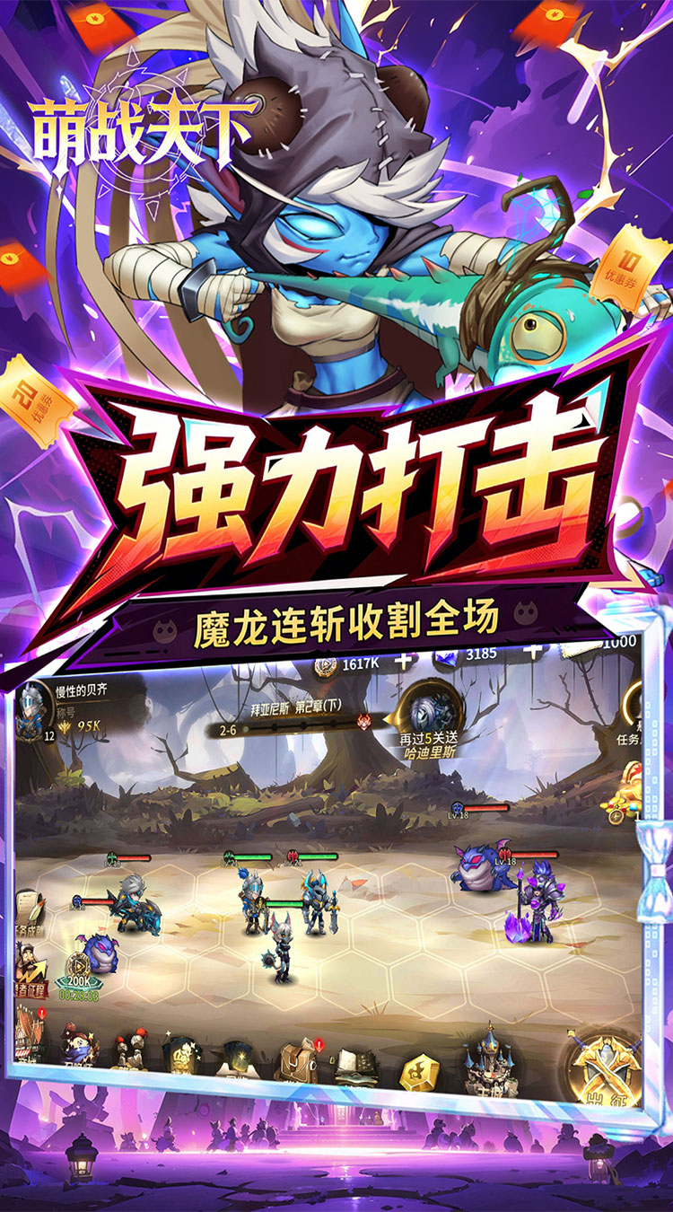 《神级勇士》是一款魔幻风自走棋like卡牌手游,主打轻松护肝的策略战斗。游戏以 “拜亚尼斯大陆” 为舞台,玩家将化身召唤师,招募风格各异的英雄组成战队,通过六边形战棋布局搭配阵容,挑战章节关卡、暗影之塔等玩法。轻放置自走棋like玩法,离线也能收获资源,同时融合了英雄养成、神器搭配、阵容克制等策略元素,既适合碎片时间休闲,也能深度钻研阵容流派。界面画风偏童话奇幻,操作门槛低,新手福利充足,拜亚尼斯大陆等你来战!
