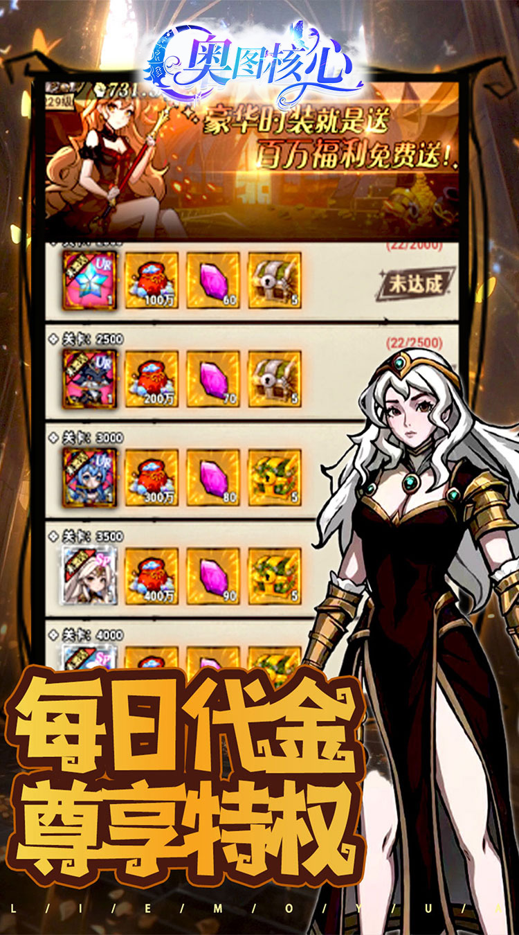 【永久0.05折】永久充值0.05折,648充值仅需3.24; 【每日送代金】每天登陆即可领取折前游戏现金券,购买游戏内一切礼包; 【真充红包】游戏内即可获取大量充值红包,使用后获得丰富货币和VIP经验; 【七日福利】轻松领取千万战力礼包,打怪升级,快人一步; 【探索冒险】卡通风格画面,色彩丰富,场景细腻,为玩家呈现一个梦幻般的冒险世界;