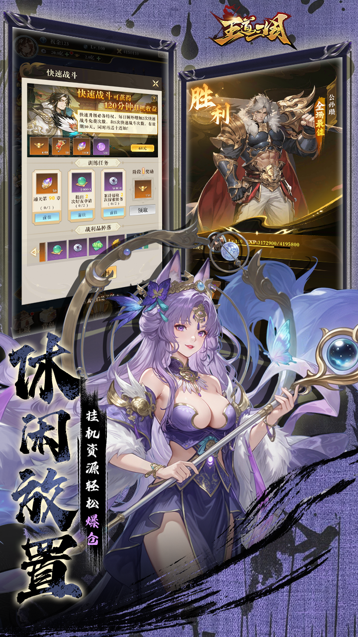 全新国风放置卡牌手游《王道三国》,深度融汇真实三国历史,以精美国风立绘还原三国名将神韵,带你沉浸式体验东汉末年乱世风云。化身一城之主,招兵买马、聚揽群雄,与千古名将并肩作战,统领三军驰骋沙场,在烽火狼烟中讨伐不臣,书写专属于你的三国传奇! 游戏重磅推出独创双人武将系统,双将协同、羁绊联动,战斗体验全面升级;更有无限连抽任性开抽、全场永久 0.1 折,福利拉满不肝不氪,轻松集齐神将称霸三国。