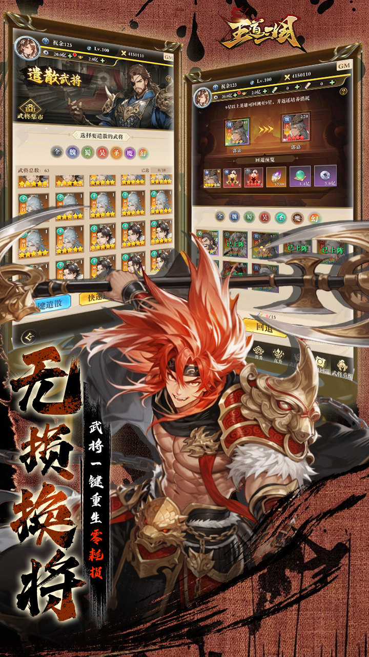 精美国风,名将焕新:超高品质国风立绘复刻名将风采,高颜值卡牌带来沉浸式三国代入感。 双人武将,全新玩法:独创双人合体出战,技能联动爆发拉满,阵容搭配更具策略与惊喜。 无限连抽・0.1 折畅玩:福利拉满,无限连抽抽到爽,全场 0.1 折,零氪也能畅玩巅峰三国。 无损换将,护肝省心:武将一键重生,材料 100% 返还,轻松养成无负担。 策略博弈,阵容随心:阵营克制、职业互补、技能羁绊、神器加持,自由组合最强战队。 放置挂机,收益拉满:离线也能暴涨资源,多元副本趣味不停,休闲养老亦可问鼎天下。 执剑三国,问鼎中原!《王道三国》邀你集结名将,一统江山!