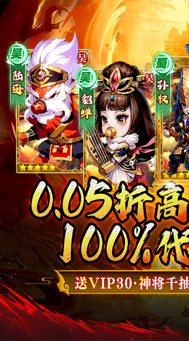 ★★【0.05折扣充值】全场永久充值0.05折,历史名城,经典战役,三国名将; ★★【红包商店】游戏内可获取大量红包道具,兑换充值货币和实充代金; ★★【满级VIP】连续登录10天送满级VIP30,海量元宝,丰富道具,海量英雄经验; ★★【无限红包】新角赠送“无线红包”道具,开启后可获取充值货币; ★★【千抽福利】通关主线关卡,领取千抽名将令;