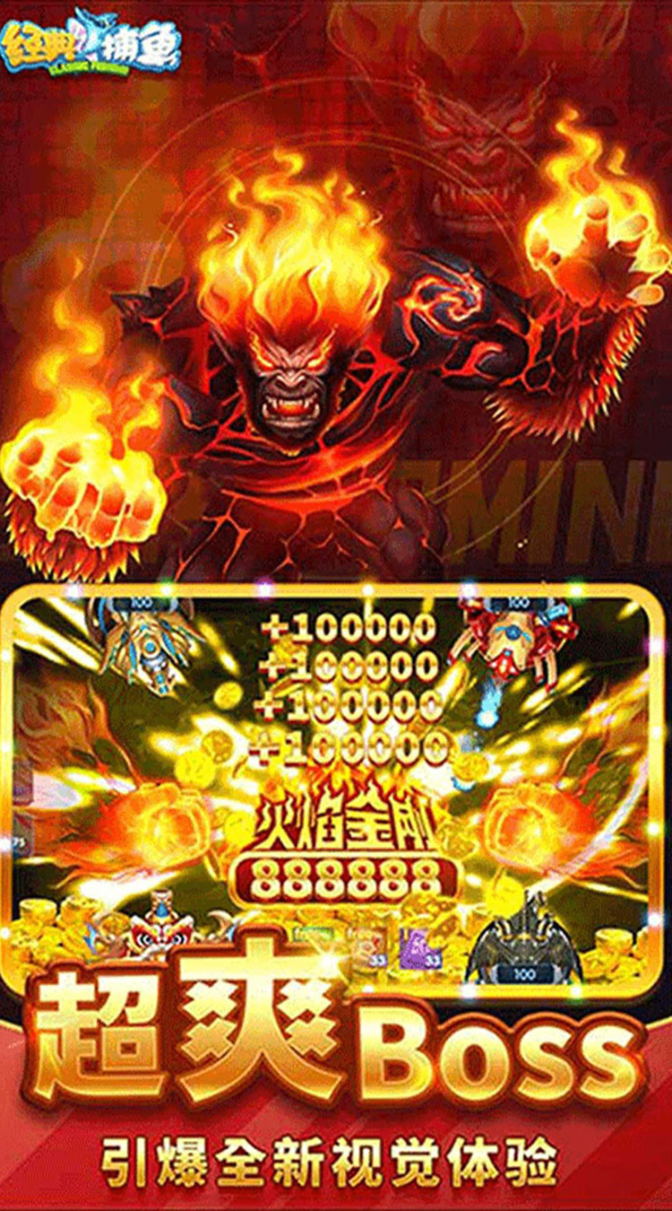 还原经典,畅快捕鱼! 《经典捕鱼H5》是一款还原了经典捕鱼玩法的次时代游戏大作,由国内顶尖研发团队倾力打造。游戏以爆率高、玩的爽为主要特色,更有独特的系统和玩法等你来探索。 玩法介绍: 【经典街机正版真捕鱼,超高炮倍超级爆金! 】 经典的街机捕鱼玩法,百万炮倍,满屏爆金,轻松一炮百亿炸翻天! 【休闲单机模拟3D,真人联机万人同台竞技!】 超高画质 3D氛围环绕,身临其境的感官体验!纯粹真人联机互动大作战,炫出特殊打鱼技巧!成就捕鱼王者! 【全新炮翅特效炸裂,全民福利倾情放送!】 华丽炫酷的限定炮台和翅膀,海量金币免费送!每日福利,活动玩法,欢乐不断!惊喜不断!奖励领到手软! 【传奇BOSS巅峰对决,至尊奖励等你来战!】 美轮美奂的人鱼、火山口中的岩浆魔龙、赛博朋克的机械鲨鱼,特殊的海王BOSS场景互动和事件玩法,全屏轰炸的核弹,秒天秒地的激光,更有至强BOSS白金真龙 爆赢20万倍!势必给您劲爽畅快的爆机体验! 【独创神兵系统,超级BUFF叠加再叠加!】 神兵养成计划:不氪金的超级特权。神兵越强大特权越惊人,从减免金币到返还点券,每升一级都有无限可能!