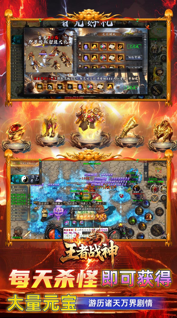 ★上线福利★ 上线送10重助力,零氪福利,三档赞助 ★登陆奖励★ 每日登陆即可领取奖励,终极冠名免费白嫖 ★在线奖励★ 在线就送大量材料和货币奖励 ★全服首爆★ 触发首爆即可获得大量货币