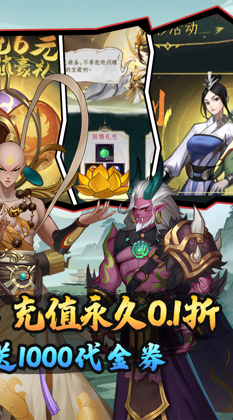 ★全场充值0.1折扣,充值比例1:10 ★平台专属代金券赠送,每日领取1000代金券 ★千抽、顶级角色、免费礼包全部送 ★全新福利版本,线下每日领取1000代金券