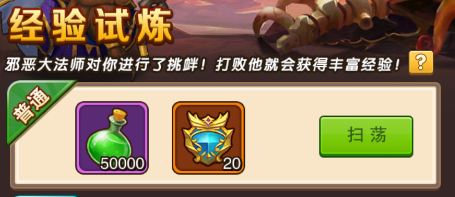 每天有2次免费挑战次数,挑战即可获得大量金币和英雄经验,难度越高,奖励越多