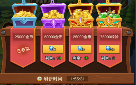 点击获取即可获得金币以及英雄经验,有免费获取次数,不过每天有限制次数哦