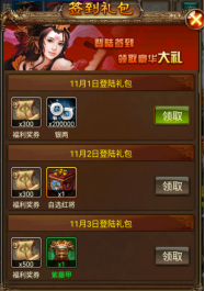 每日签到免费获得次数,抽奖获得海量游戏内道具,武将碎片,装备碎片等等!