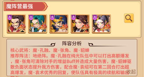 阵容组成:魔·袁术+魔·袁绍+魔·张角+魔·孔融+魔·貂蝉