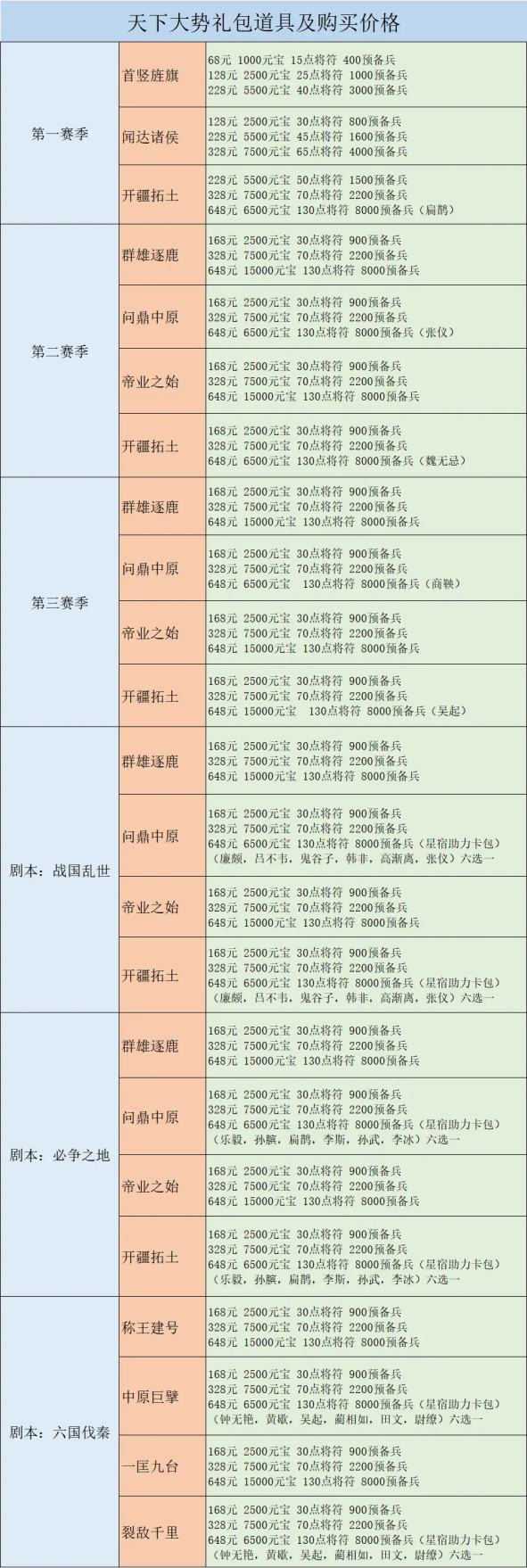 十六、所有赛季天下大势礼包道具是什么,多少钱购买?