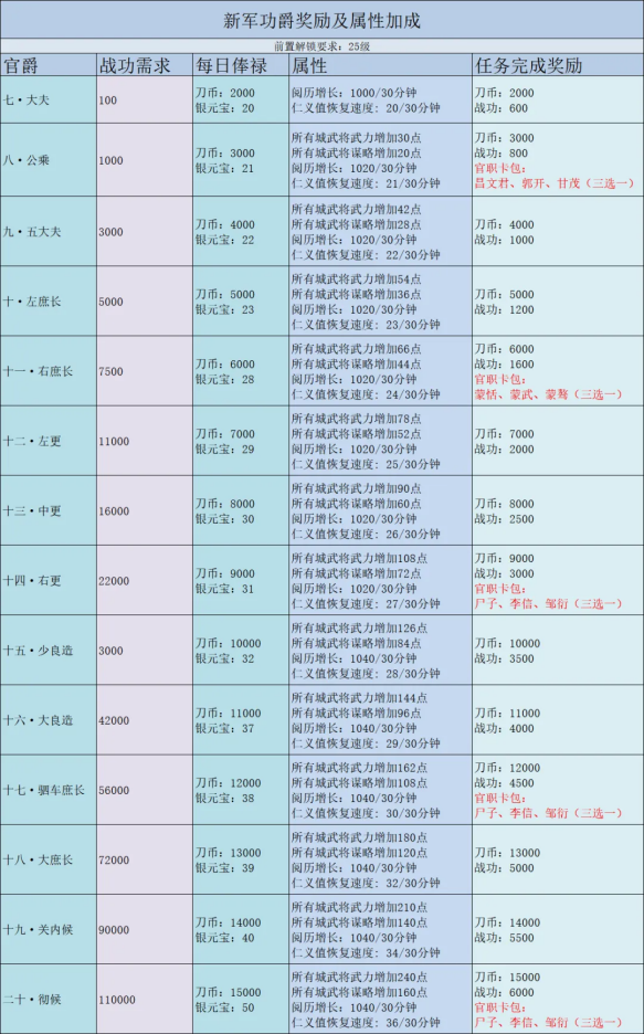 十五、军功爵奖励及属性汇总?