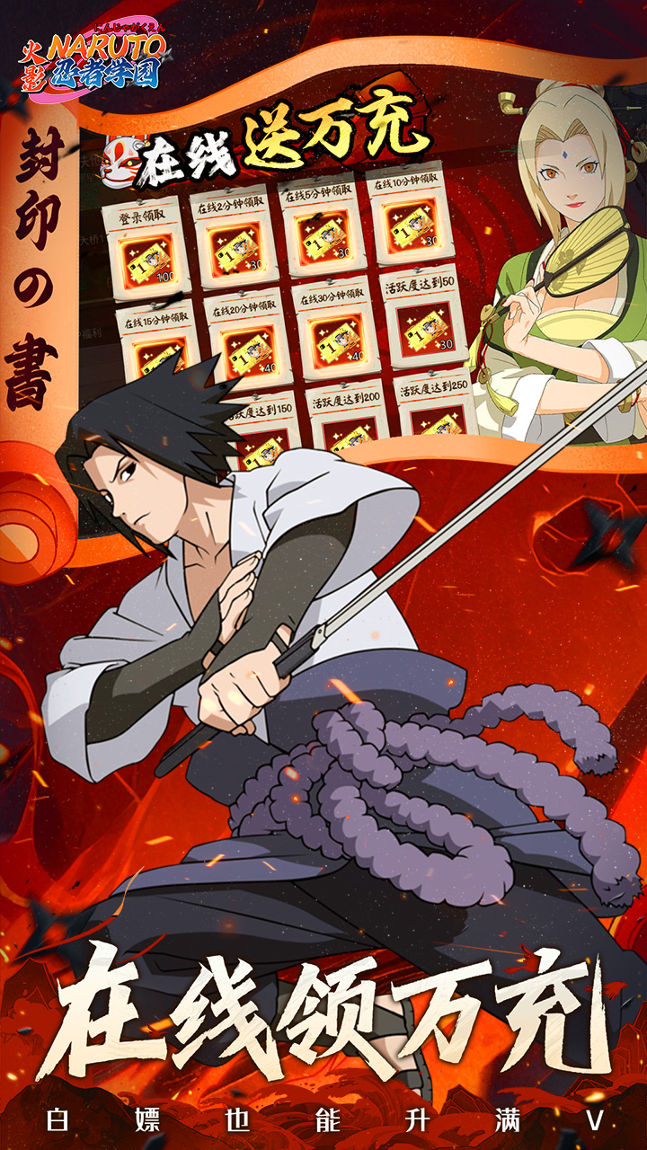 1、天天送648代金券,商城礼包0元购! 2、在线活跃送万元充值卡,白嫖也能升满V! 3、每日登录送千抽、强力忍者任你选! 4、满星忍者免费送,0氪也能当大佬! 5、连续登录送稀有忍者,7天登录送迈特凯! 6、推图闯关升级忍者证明可得海量代金券!