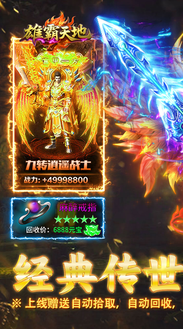 充值比例1:100元宝 ★上线福利★ 自动回收 自动拾取 超级返利卡 ★免费礼包★ 游戏内有各种免费礼包,每日可领一次,内含大量材料货币 ★地图首杀★ 先到先得,资源优先,大量bOSS首杀奖励等你来拿 ★装备首爆★ 达成首爆目标就可以获得元宝奖励