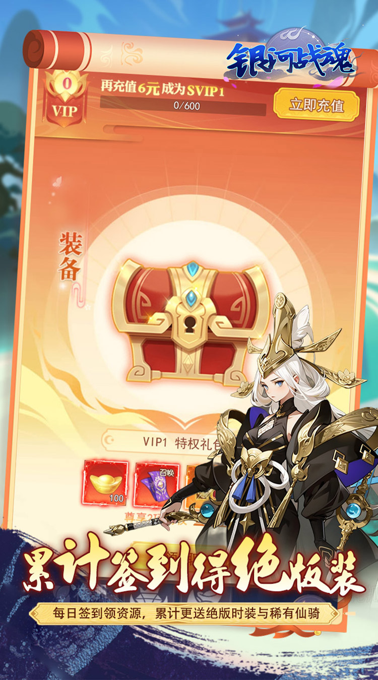【登录即领稀有仙骑】首登即送限定仙骑,连续登录7天更可解锁UTR顶级神将 【七日连登战力飞升】每日登录领极品道具与稀有神将,七天助力实力暴涨 【累计签到得绝版装】每日签到领资源,累计更送绝版时装与稀有仙骑 【挑战解锁永久VIP】成功突破50层挑战即可激活永久VIP10,享专属特权 【全程超低折扣畅玩】永久享受0.05折超值优惠,轻松修仙无压力