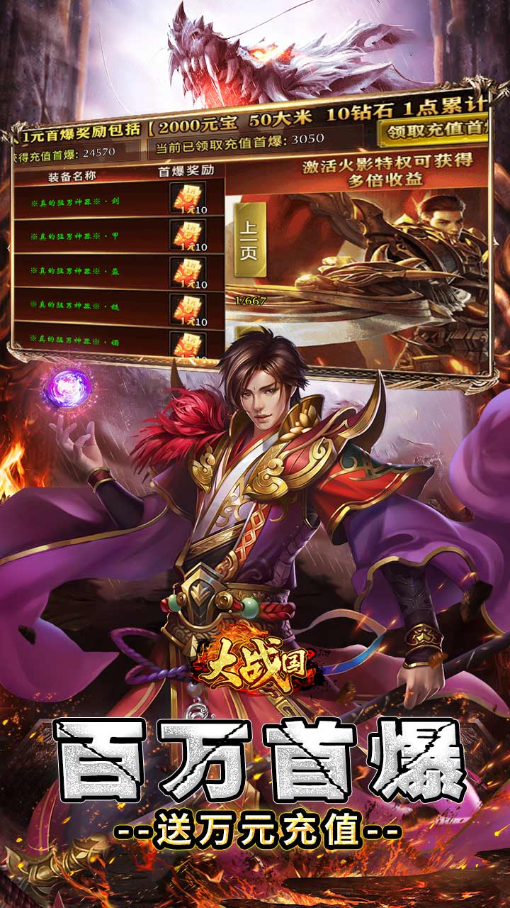 1、上线重生2选1,更有无限分身启航套装伴君而行!上线属性数十万亿!超爽超炸裂! 2、刀刀爆充值,红包爆满地!砍瓜切菜也可激活顶赞神豪 冠名! 3、全屏分身术,属性暴涨!暴涨!免费的爆率透视,公开透明可见怪物产出红包! 4、百万首爆,上线半小时,白漂上万米!充值送送送! 5、1米当上大老板!送终极透视戒指,开启火眼金睛,透视高阶材料终极装备!更送终极全屏分身术!