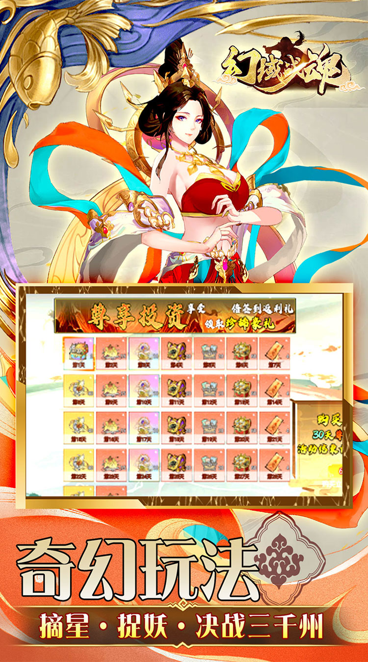 【永久0.05折】永久0.05折,真实一口价,福利更多; 【创角送礼】VIP经验,神将【哪吒】,限定装扮等; 【签到送充】七日签到领千元真充红包,每日上线直送6480代金券; 【代金返利】全新福利,累计充值每天都能领取超值代金券返利; 【满星神将】完成主线送毕业满星神将-丹江口话事人【杨戬】; 【千抽大奖】累计征战获取1000张召唤道具;