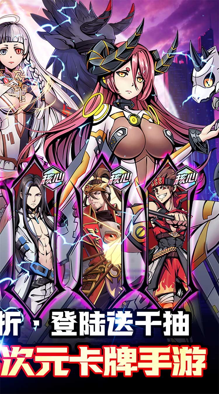 ★异次元卡牌手游,充值享0.05折优惠! ★新版本福利,登录免费送千抽! ★八日之约,天天登陆豪礼领不断! ★通章闯关,领超强五星英雄! ★每日签到、累计登录送海量钻石、五星英雄、大量召唤券.