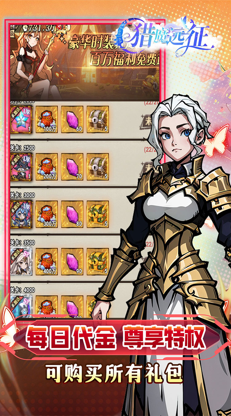 【永久0.05折】永久充值0.05折,648充值仅需3.24; 【每日送千元】每天登陆即可领取折前6480元游戏现金券,购买游戏内一切礼包; 【真充红包】游戏内即可获取大量充值红包,使用后获得丰富货币和VIP经验; 【七日福利】轻松领取千万战力礼包,打怪升级,快人一步; 【探索冒险】卡通风格画面,色彩丰富,场景细腻,为玩家呈现一个梦幻般的冒险世界;