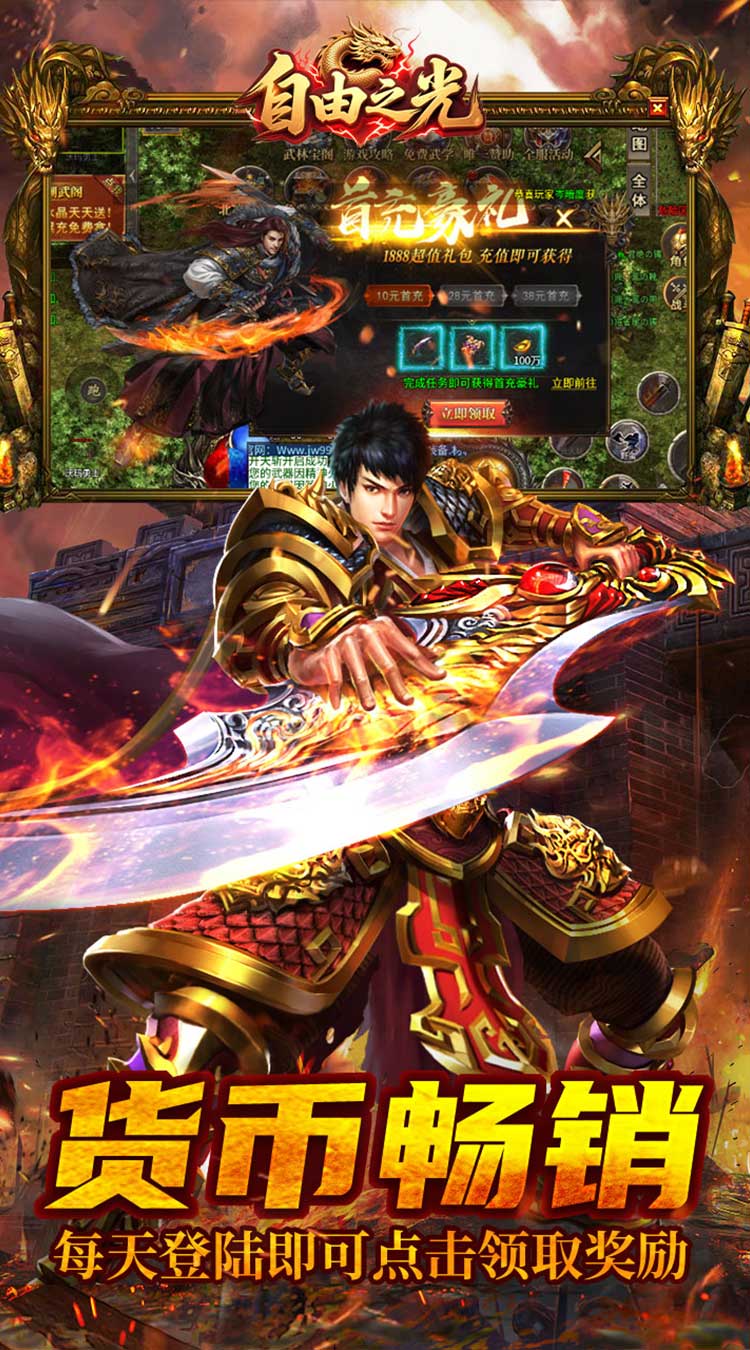 ★全区首爆★ 杀怪获得不同装备还会获得大量灵符 ★在线奖励★ 在线一定时长即可领取在线奖励,大量元宝奖励 ★七日签到★ 每天登陆即可点击领取奖励,大量灵符 ★实物回收★ 爆出实物即可回收获得灵符;一怪一实物,一怪一专属 ★触发奇遇★ 刷怪有概率触发奇遇,获得神秘奖励