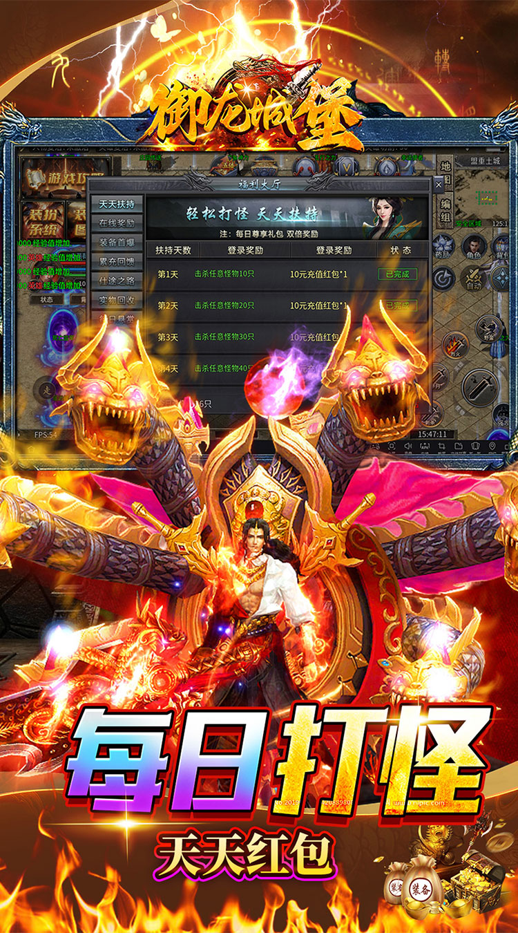 ★上线豪礼,自动拾取,自动回收,装备靠打!! ★特色玩法,畅爽体验,经典三职业合击!! ★超过BOSS,超多地图无限闯荡!! ★每日挂机,免费领取红包!!