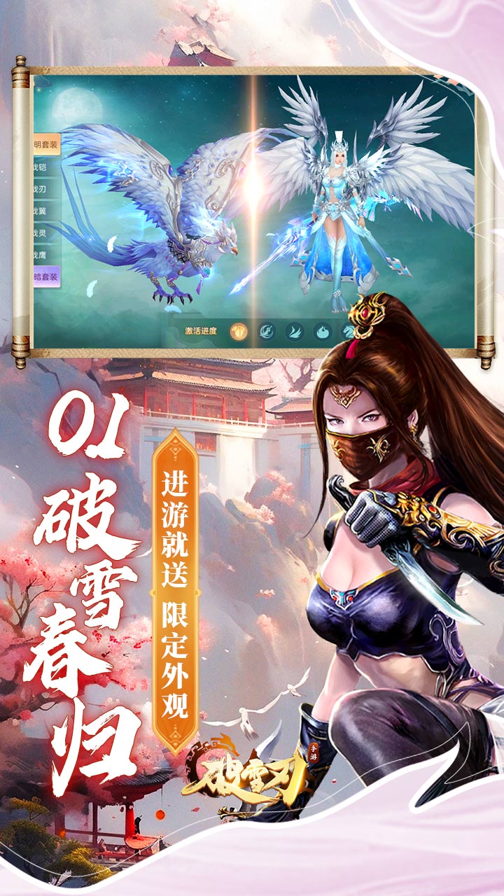 《破雪刃》是一款开放世界高自由度的MMO手游! 0.1折万元免费版,游戏内每日免费领10000代金!礼包码wy6480专属加赠:领取进入游戏内背包每日免费开1次6480! 白虹、邀月、灼颜、幽夜、地藏五大职业任君选择,红颜助战,变身天神,三界混沌,妖魔当道,成佛入魔,皆由你心,你是否能成为一方之主,制霸三界!