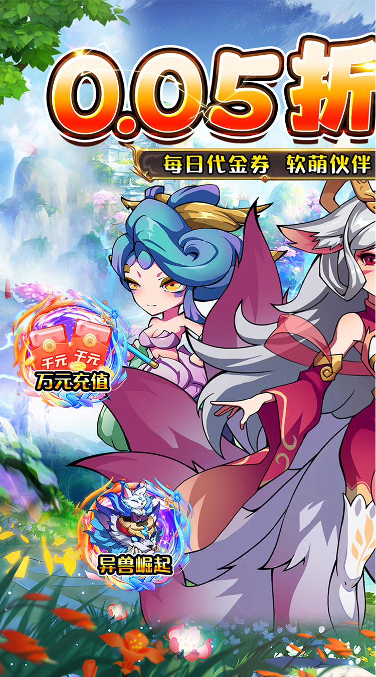 ★游戏充值永久0.05折,玩到爽!! ★登录送VIP10,每日领百抽,天天送货币!! ★每日签到领取万元代金券,买买买,不花冤枉钱!! ★送强力异兽、山海相伴,领海量养成道具!!