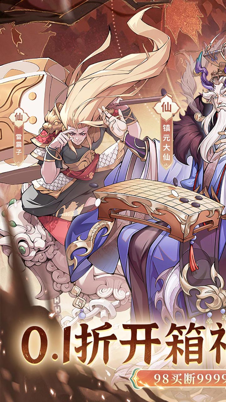 1、全新0.1折98元券买断版开箱上线,每日登录就送6480代金券,签到赠送神话级自选仙侣 2、线上内置低价买断版,仅需98元即可买断999999999代金 3、材料直接送!再无养成焦虑!更有天命特权每天登录尊享专属代金,每天上线元宝领不停! 4、秘宝奇遇抽限定神装称号,鬼斧神工炼自选神宠,海量活动轻松助力全套毕业 5、7倍开箱效率大升级,超炫法相、坐骑、星图助你轻松寻仙斗法