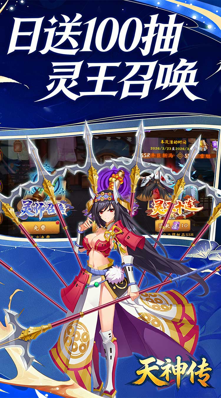 ★★【全场0.05折】充值享永久0.05折福利; ★★【每日100抽】游戏内登录每日免费领取100召唤券; ★★【创角送礼】送1000代金,SSR‘死神’,8888勾玉货币,橙色顶级装备; ★★【七日好礼】“开服7天乐”领取顶级XR英雄 ‘真田幸璃’; ★★【灵契大陆】灵师结伴,发掘灵契大陆奥妙,式神集结,决战平安京;