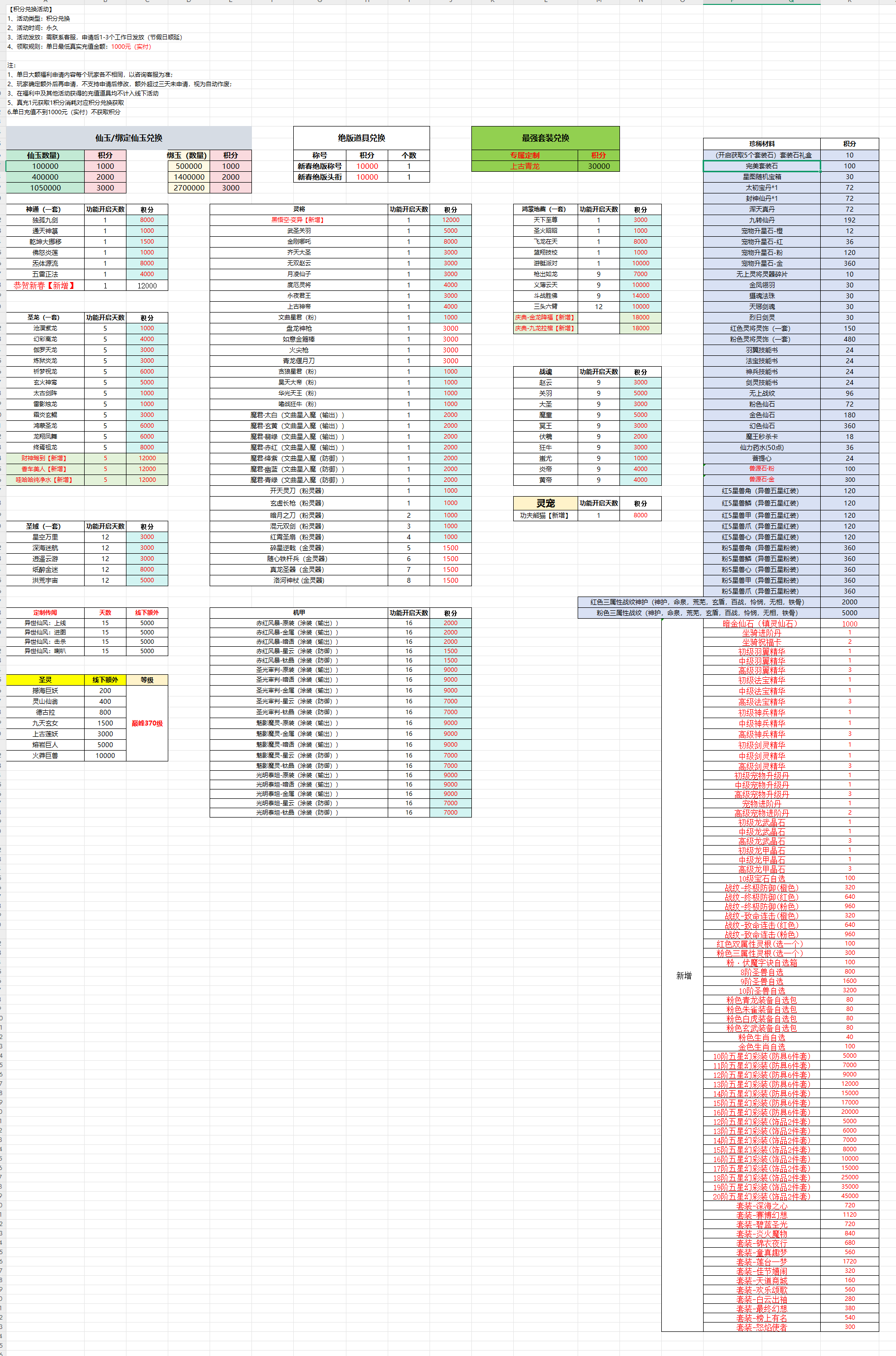 | 单日5w | 【唯一】上古青龙 | 20000积分 | 3000w仙玉 | ||||||