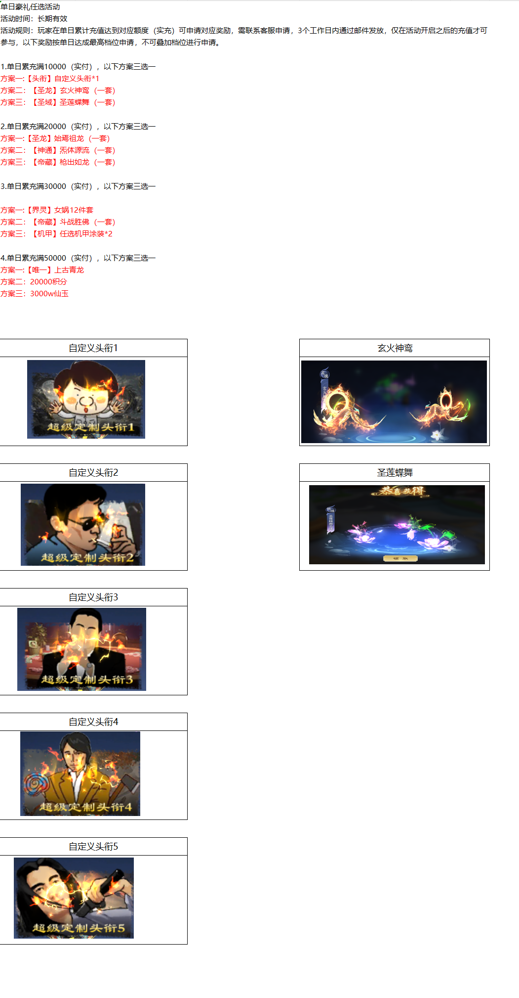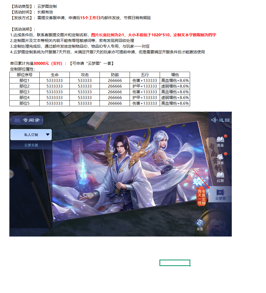 2. 玩家需提供1张人物图作为头像定制,完成品以游戏内头像为标准