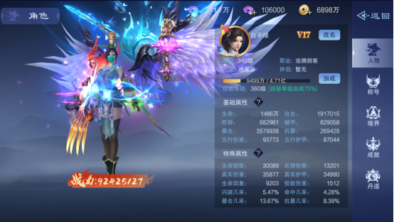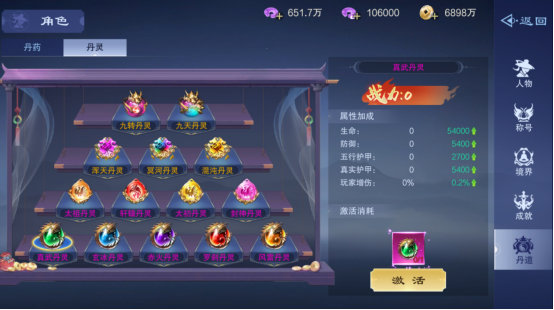 角色界面是游戏最常用的功能之一,这里可查看人物、称号、境界、成就、丹道。下面一起来看看角色系统的详细介绍吧!