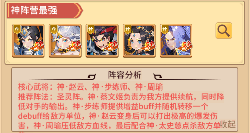 阵容组成:神·赵云+神·蔡文姬+神·太史慈+神·步练师+神·周瑜